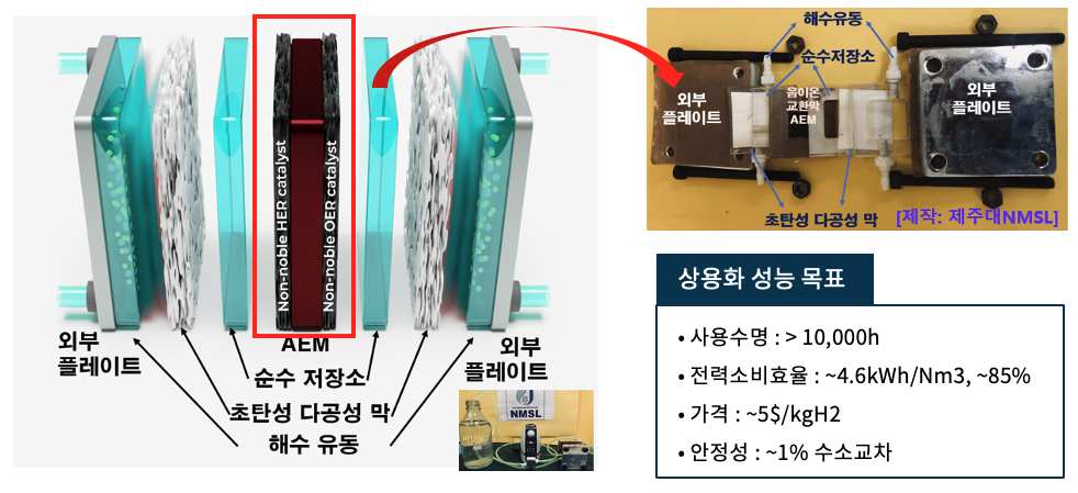 · 해수 맞춤형 그린수소 생산 부품소재 ·셀 ·스택 제작에 기반한 3kW급 고성능/고내구성 해수전해조 시작품 제작